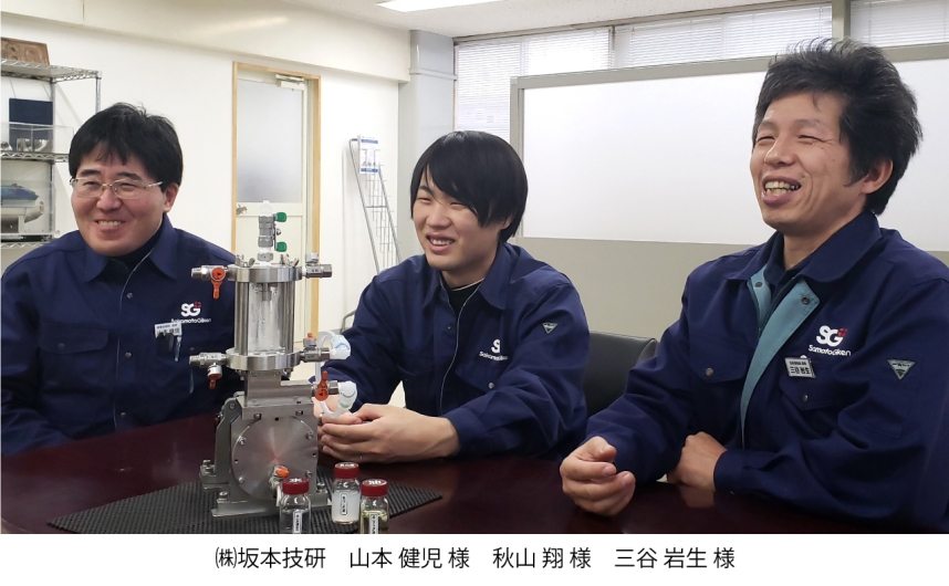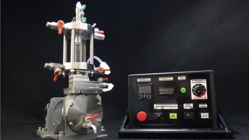 高知県南国市の㈱坂本技研さんと高知工業高等専門学校が共同開発した「ファインバブル技術」を使った「高速せん断乳化装置」でした。
