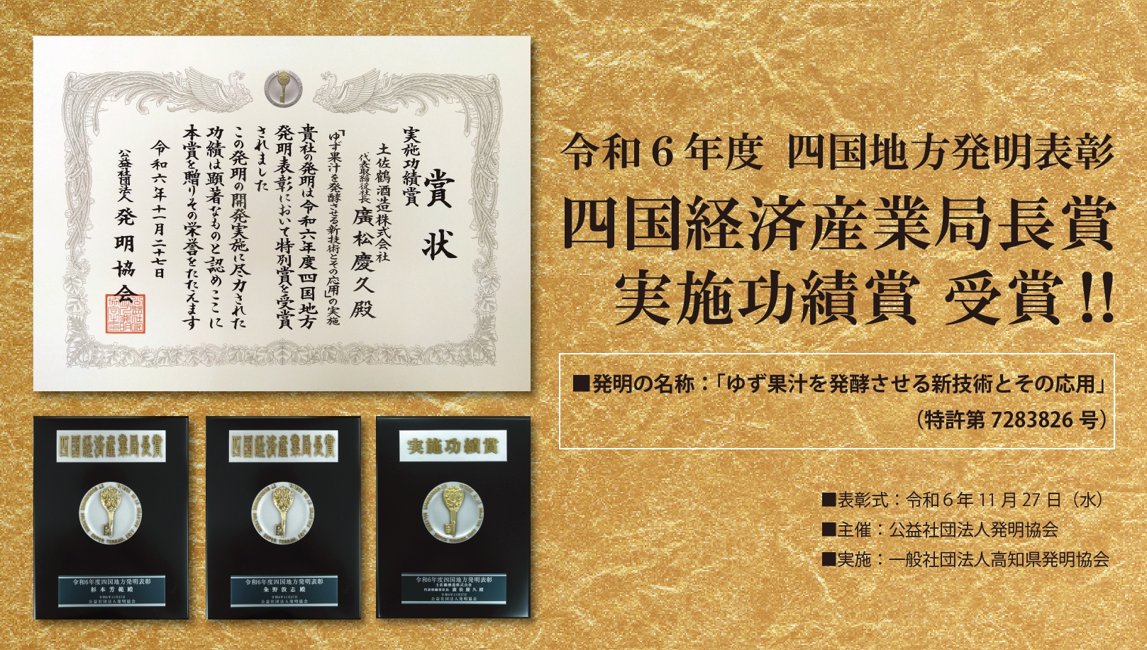 今般、この技術が優れた発明として高く評価され、今年の四国発明表彰(公益社団法人/発明協会主催)で